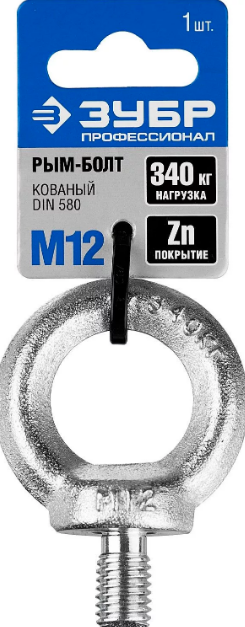 - Рым-болт DIN 580, М12, 1 шт, оцинкованный, ЗУБР