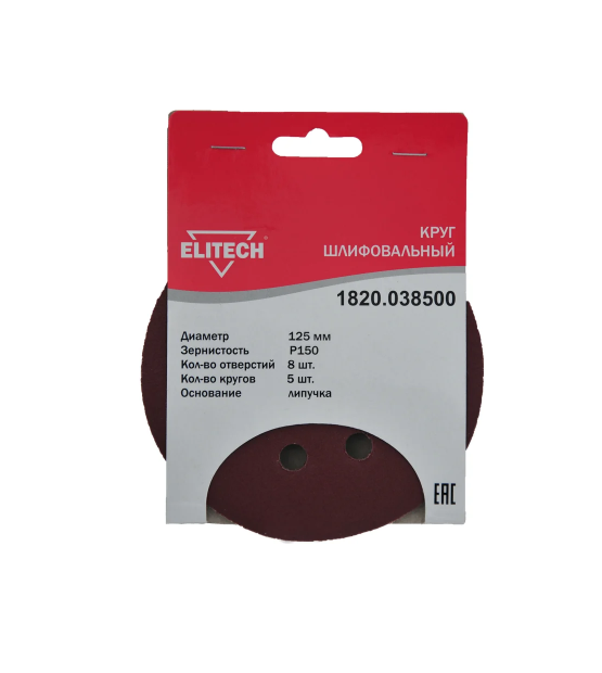 - Круг шлифовальный,ф125мм,P150,5шт,липучка,8отверстий
