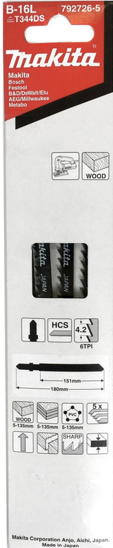 - Лобзиковая пилка для дерева B-16L, 5 шт.