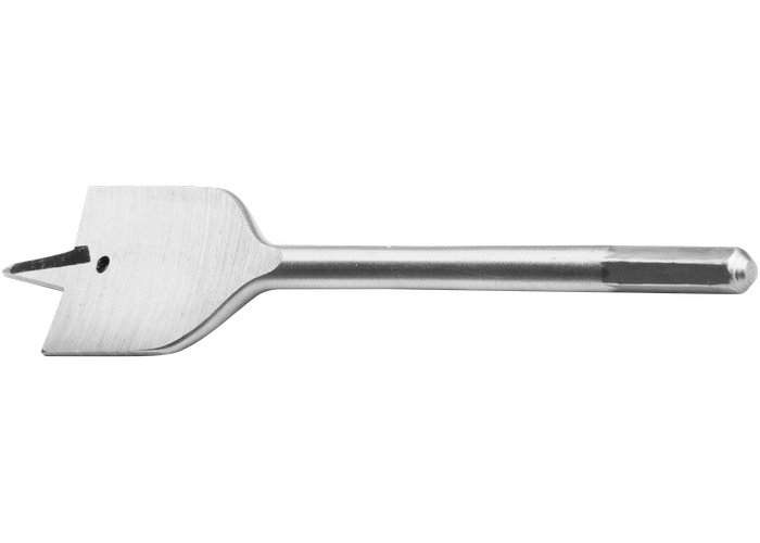 Сверло перовое изготовлено из углеродистой стали. Твердость режущих кромок 42–50 HRС. Может использоваться с ручной механической и электрической дрелями, а также сверлильными станками. Хвостовик шестигранной формы предотвращает проворот сверла в патроне.