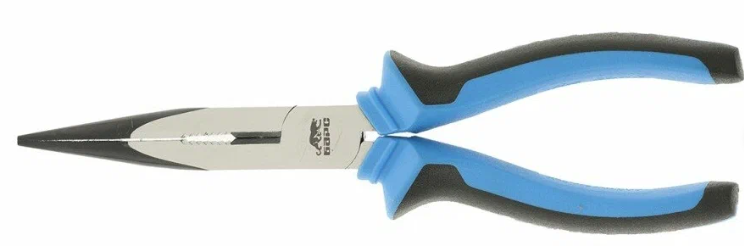 - Длинногубцы прямые 200 мм, хром-ванадий, двухкомпонентные рукоятки// Барс